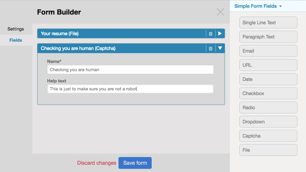 - New fields are available for the Form Builder: